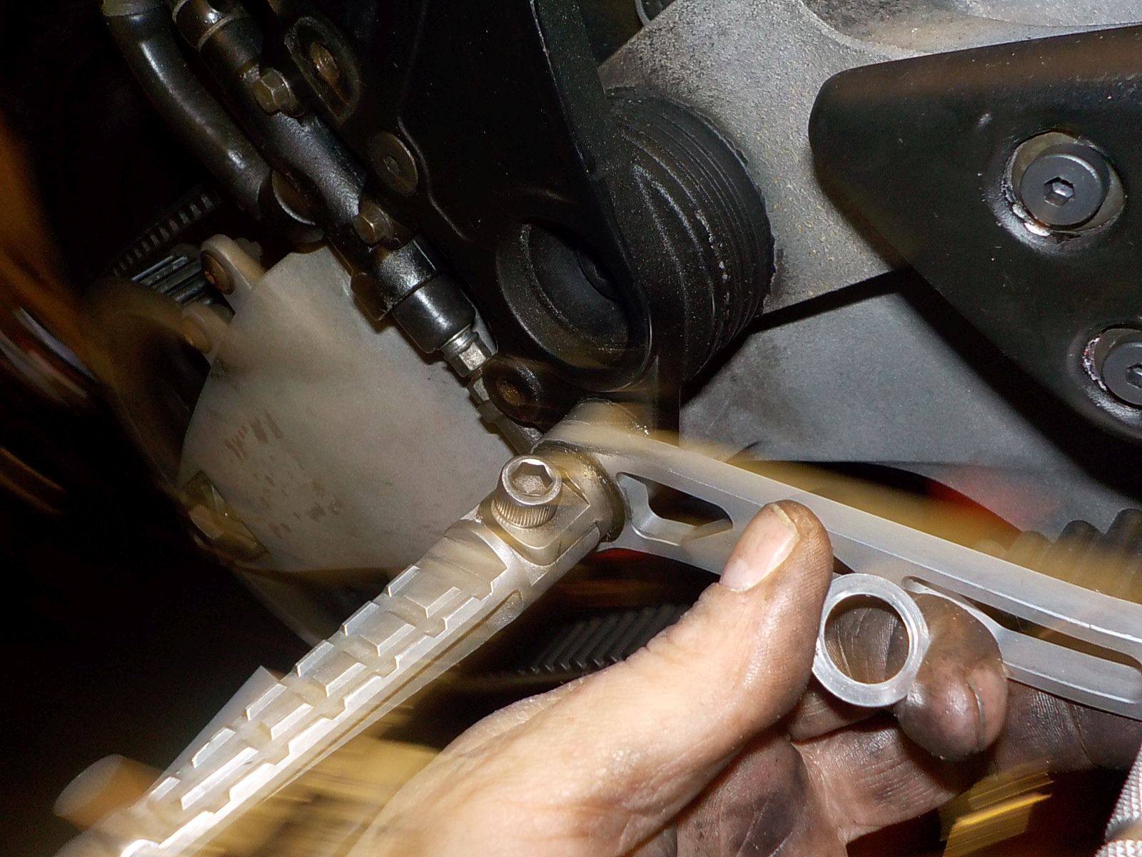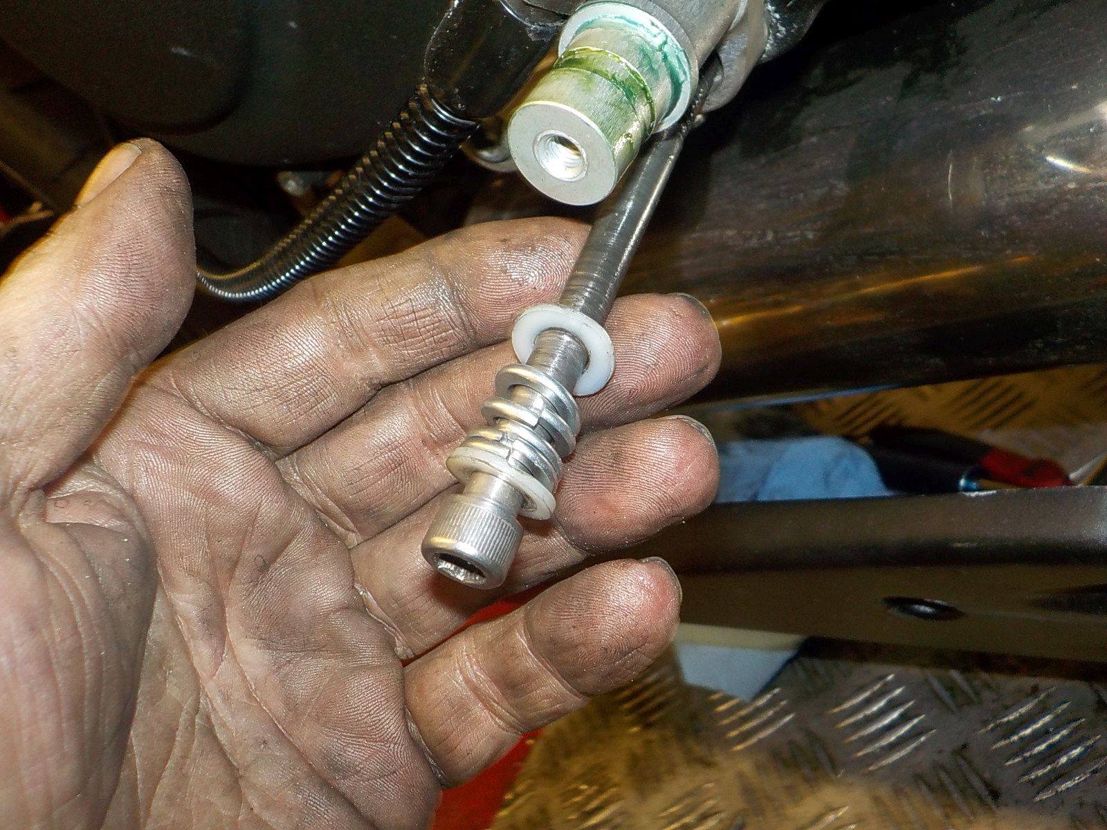 long bolt... to long so lock washers where used as spacer — bij Twin Motorcycles Buell Support forever.
