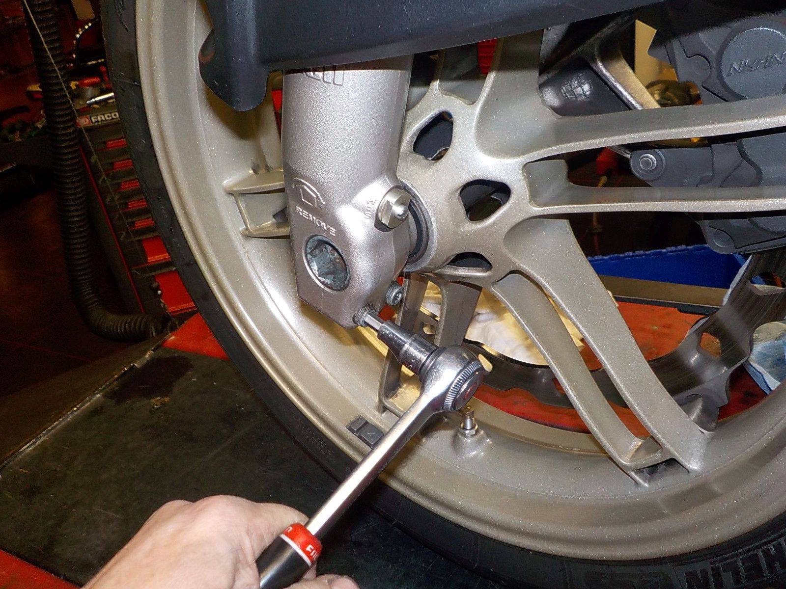 wheel back in and setting to tq — bij Twin Motorcycles Buell Support forever.