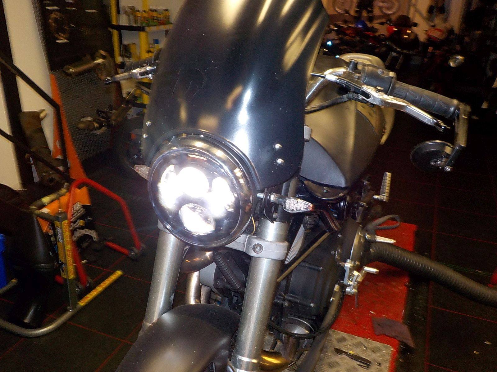 and checking the ex.beemer stuff the customer asked to mount — bij Twin Motorcycles Buell Support forever.
