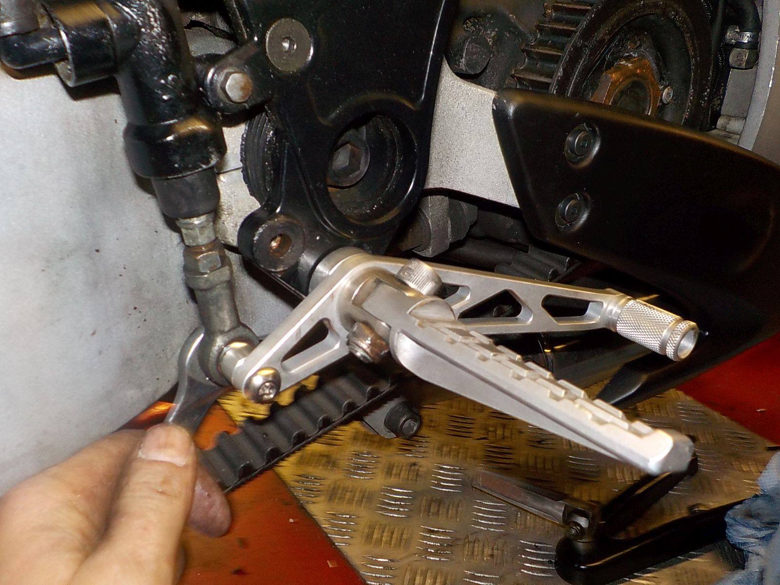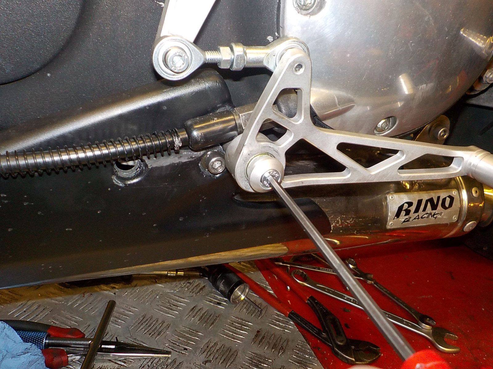 making ready teh hidden rear brake — bij Twin Motorcycles Buell Support forever.