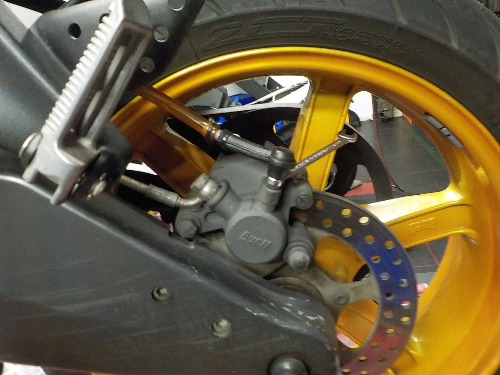 and i drain the rear brake right away , as this is going to be replaced — bij Twin Motorcycles Buell Support forever.