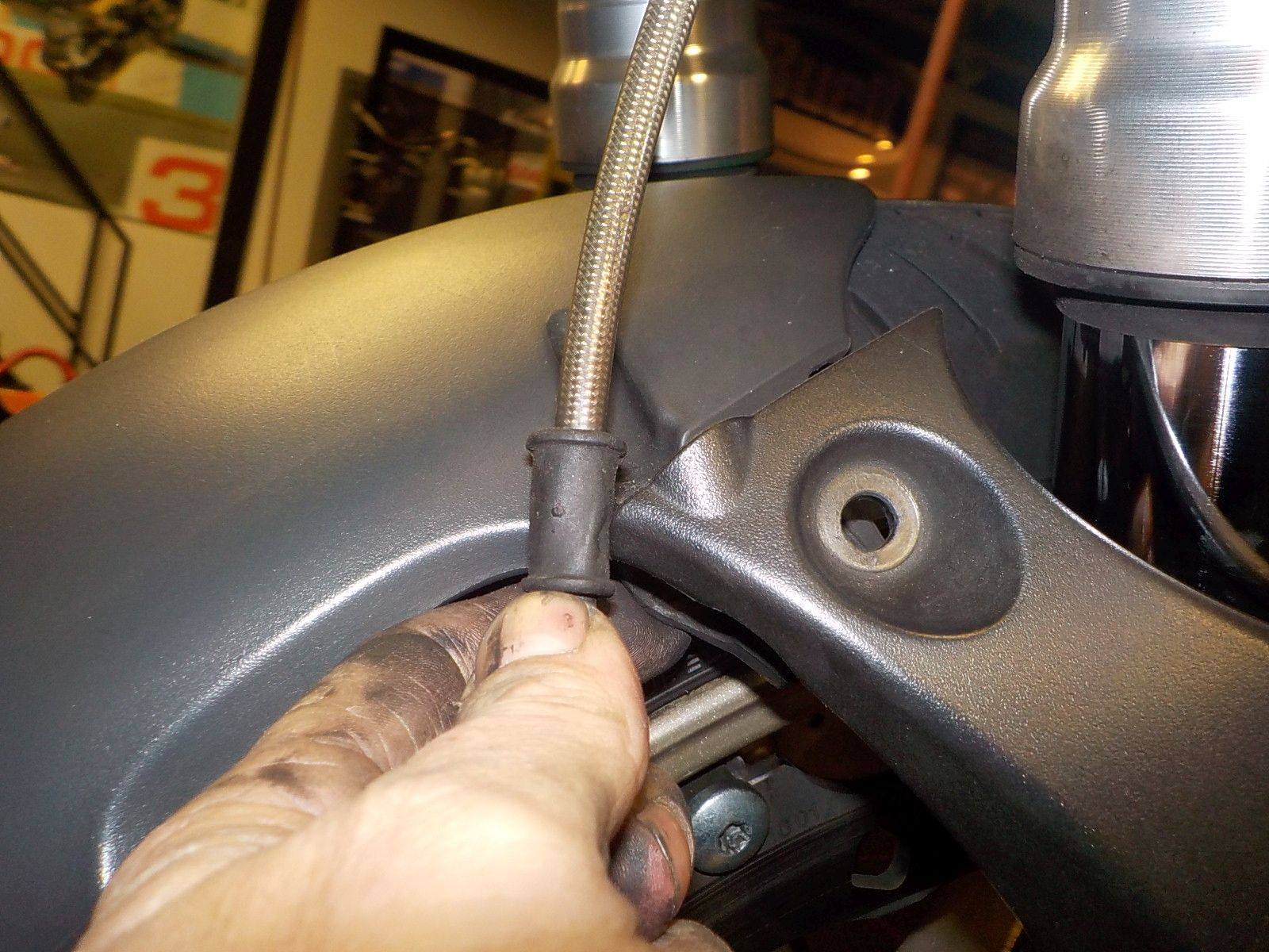 rubber for brake line protection in the fender — bij Twin Motorcycles Buell Support forever.