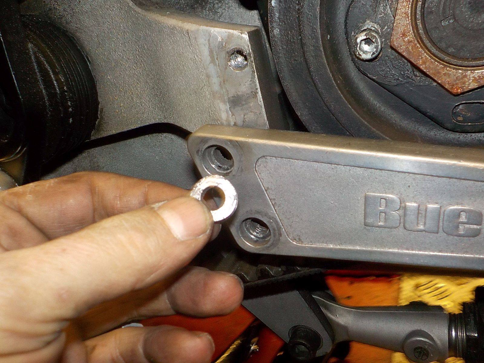 correct bolt and washers.. spacers made — bij Twin Motorcycles Buell Support forever.
