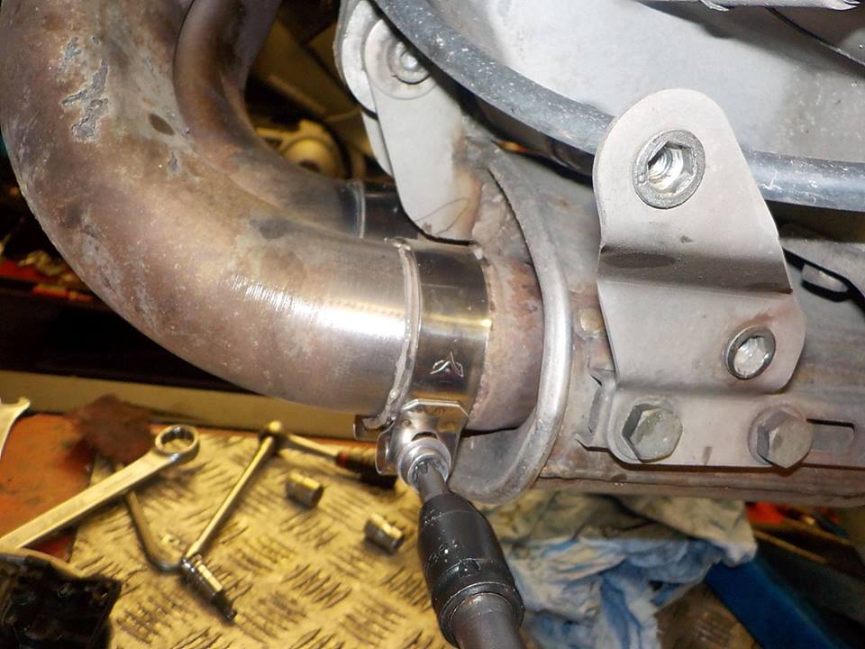 and header pipe in the mufler tighening the new clamp