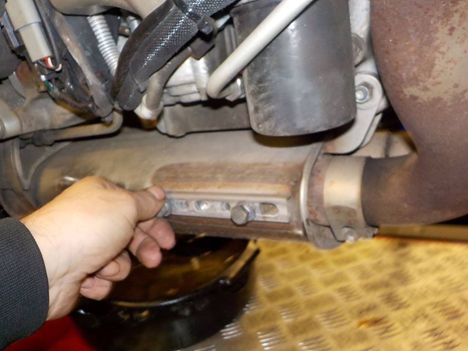 grrr... lucky this one is not corroded tight .. hard to get to the lower screw because the exhaust