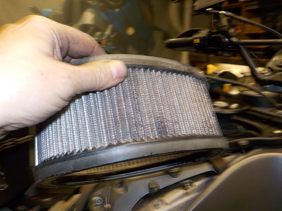 moving up top side... airfilter removal.. i change this one to .. paper filter , buell racing.. has become heavy from dirt and oil