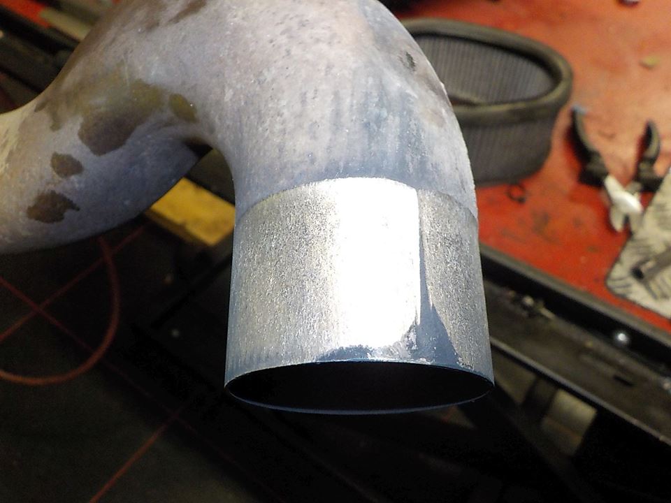 engine down.. and rear header pipe off.. you see vibration wear.. pipe has been loose in the mufler ratteling . wearing out the pipe