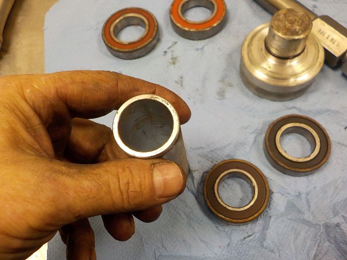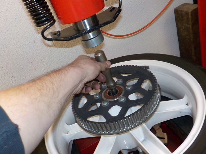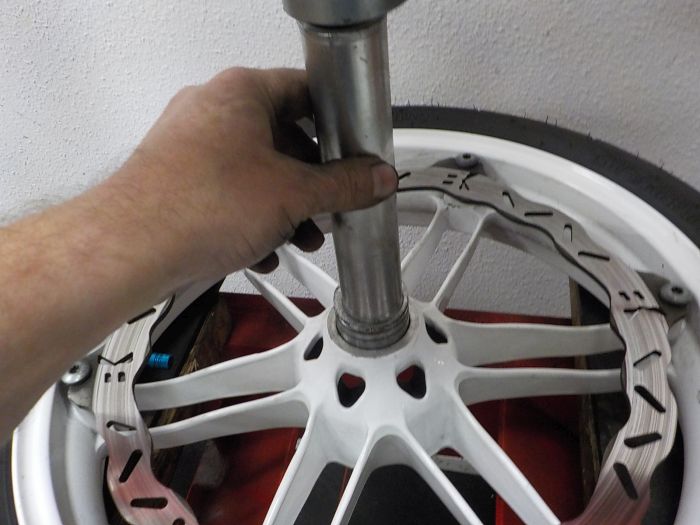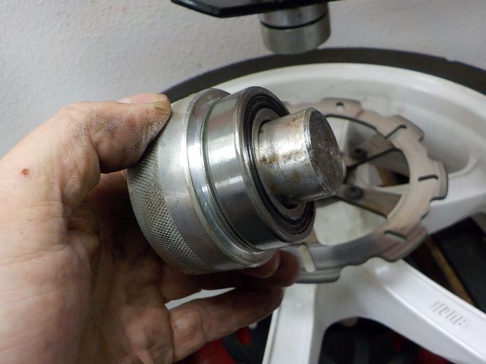 i made our own pressing tools, so the spacer is located and the tool douse not fall out turning the wheel over with a o-ring