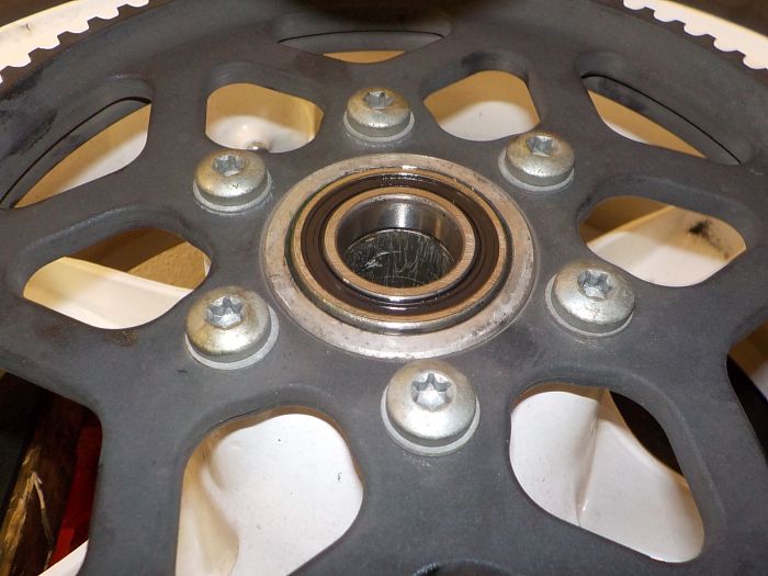 BEaring ready to go in the wheel. Do a light coat of grease on the outer of the bearing and inside, to protect the aluminium of the wheel on wear , as these wheels only have so many bearing replacements in theme before the hole becomes to large, pressing with some care will make theme last longer