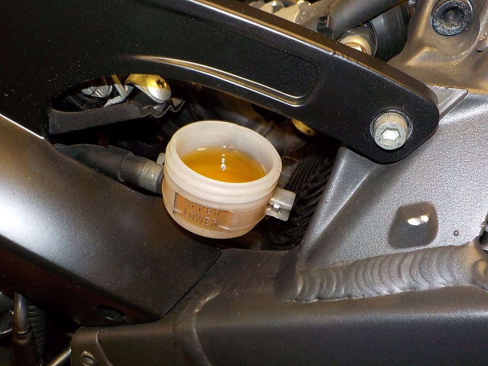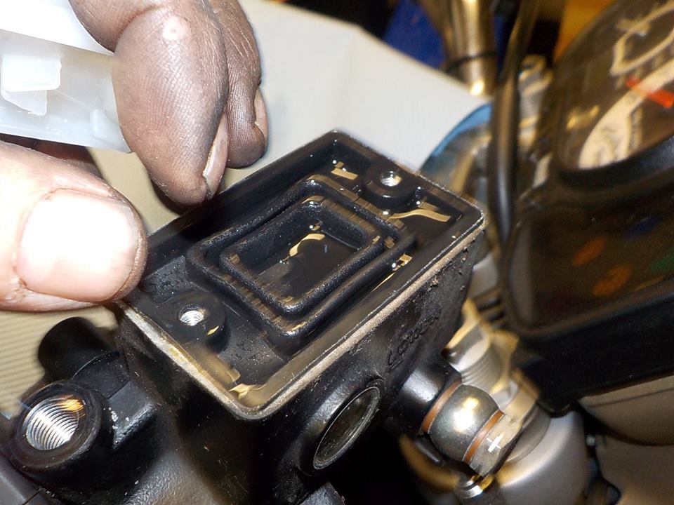 changing the frotn brake fluid.. the membrame bleeded some fluid already over time , clean this before you put it back