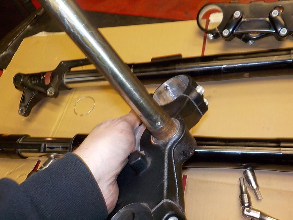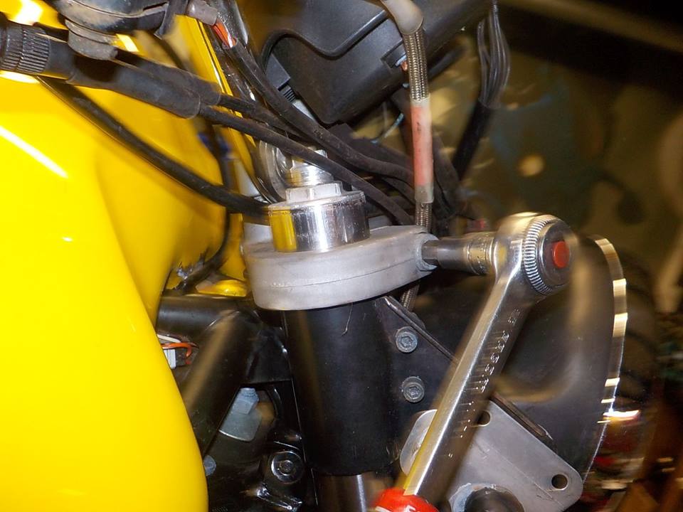 we are going to lower a little the spring pre load , so the bike sits a little lower with the customer on it