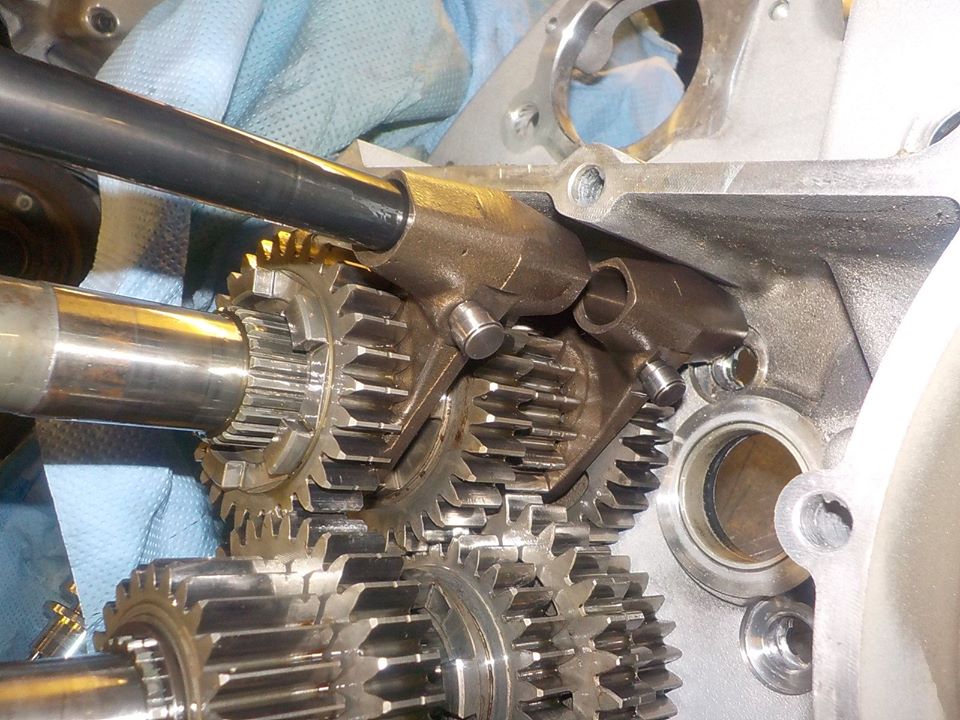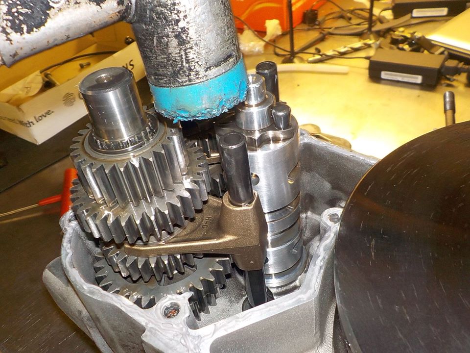 put the shifter drum in.. and guide the forks in the slots — bij Twin Motorcycles Buell Support forever.