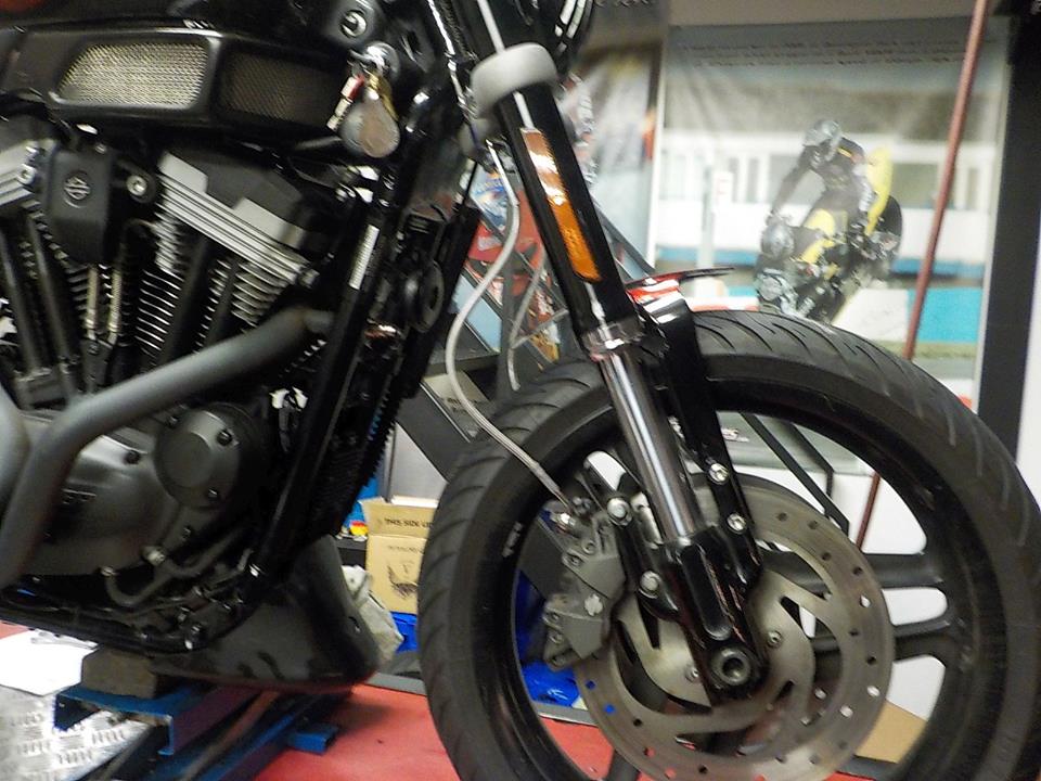 push down the suspention some times.. to set the forks on the axle and tighten the pich bolt — bij Twin Motorcycles Buell Support forever.