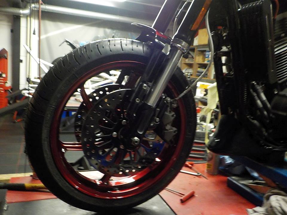 eeehhh check... and check again , what way will the wheel turn ( the off factory mounting stickers are gone for the paint — bij Twin Motorcycles Buell Support forever.