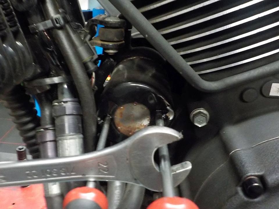 2 large flat screw drivers... a box wrench.. and a good grip to unscrew the old oil filter — bij Twin Motorcycles Buell Support forever.