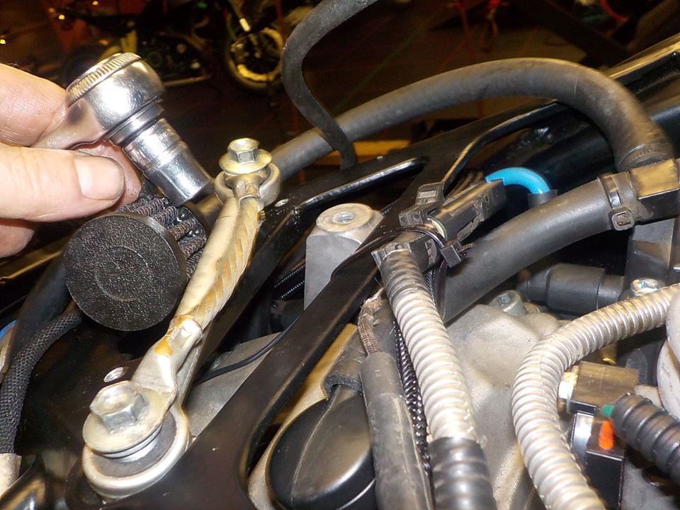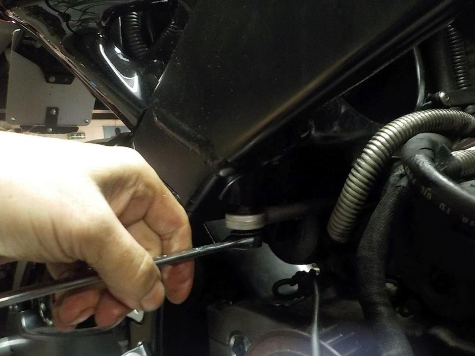 removing the rear breakfluid reservoir so i can take out the swing arm with rear break master in 1 go , and loosening the battery cables