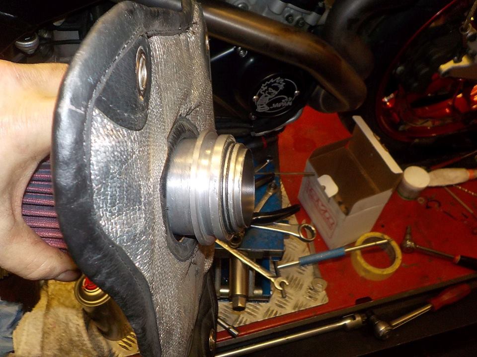as the airfilter is hard to pull over the stack, best remove the stack with blanket , a aftermarket badclamp is used.. this should have been a aluminium clamp