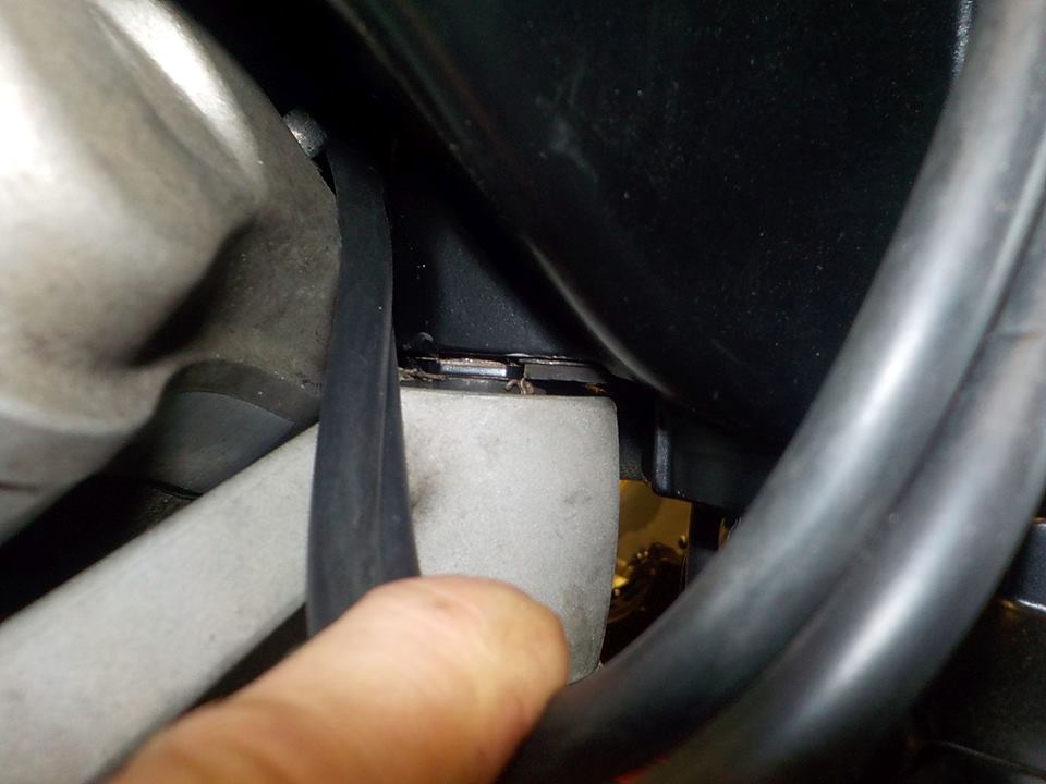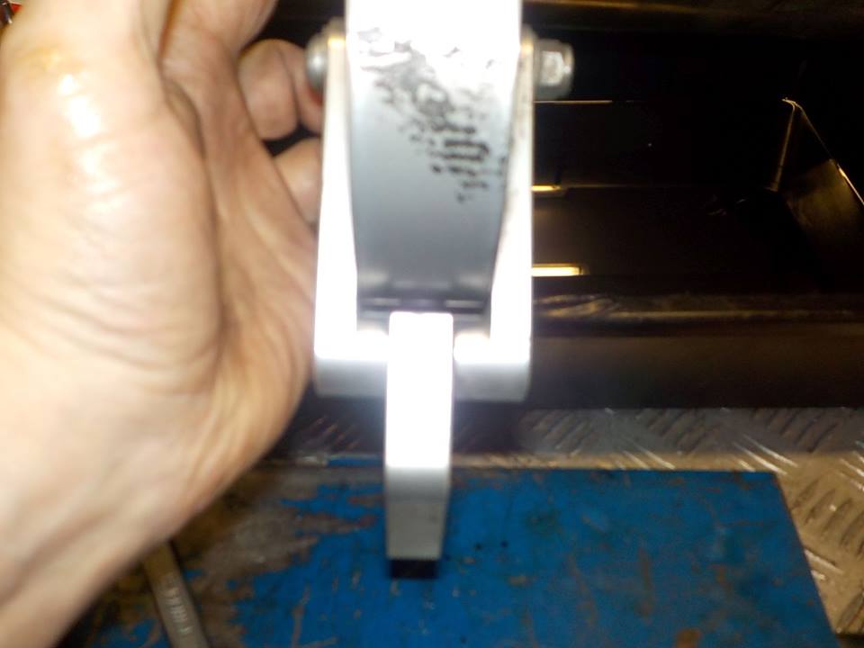 it has slammed on the bracket with force.. hard to see on the picture, but there is play on the pivot and it is of to one side... the aluminium aroung the pivot hole is streched.. need to replace this.. other wise it will happen the complete idler wheel breaks off
