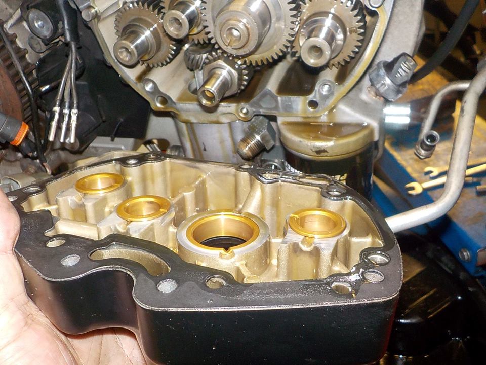and shifter off.. markings of a mishap , as the spacer bushing is pushed in the cover