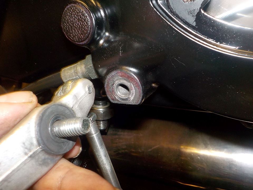 and lifting the engine again.. you can loosen it by hand.. before we mount this back.. we need to loctite the thread insert inplace , so it will not come loose any more