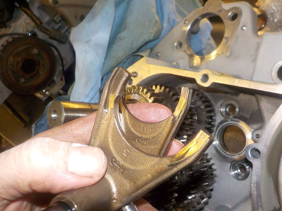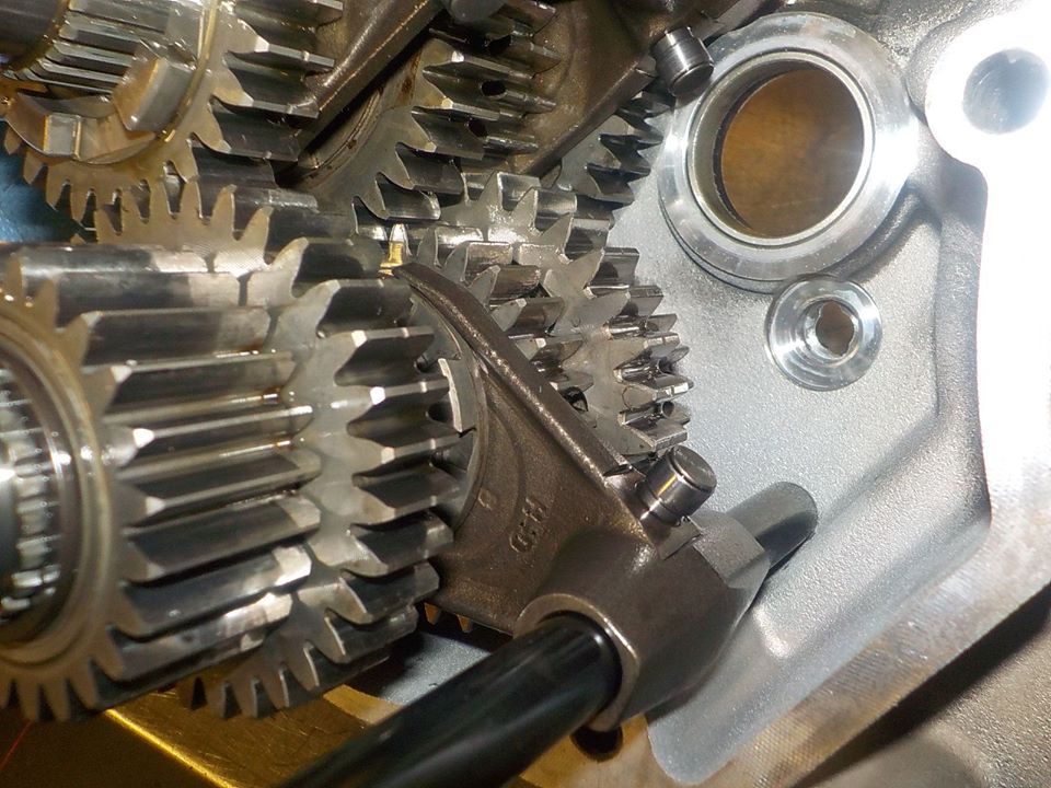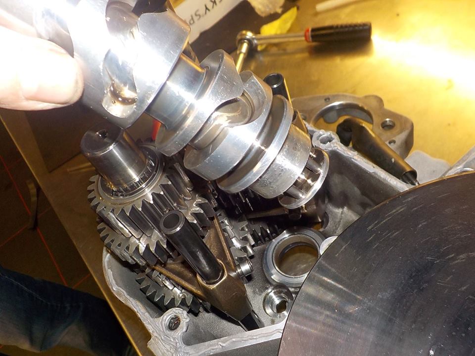 shifter forks in the gears, and slider pipes on.. shifter drum can go in — bij Twin Motorcycles Buell Support forever.