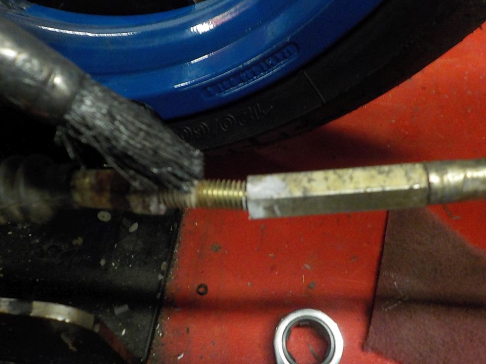 note the adjuster nut leaking oil throught the treads.. the nut seals this — bij Twin Motorcycles Buell Support forever.
