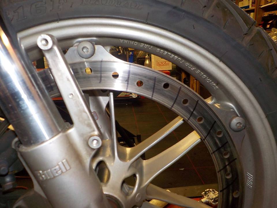 lightly aply the brake and turn the wheel , you see the sharpy lines fade — bij Twin Motorcycles Buell Support forever.