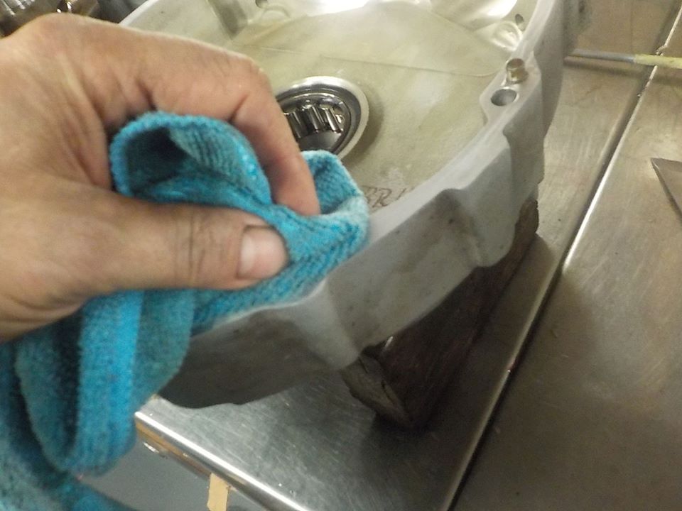 cleaning and degreasing the case halfs again , and aply a thin bead case sealer gasket