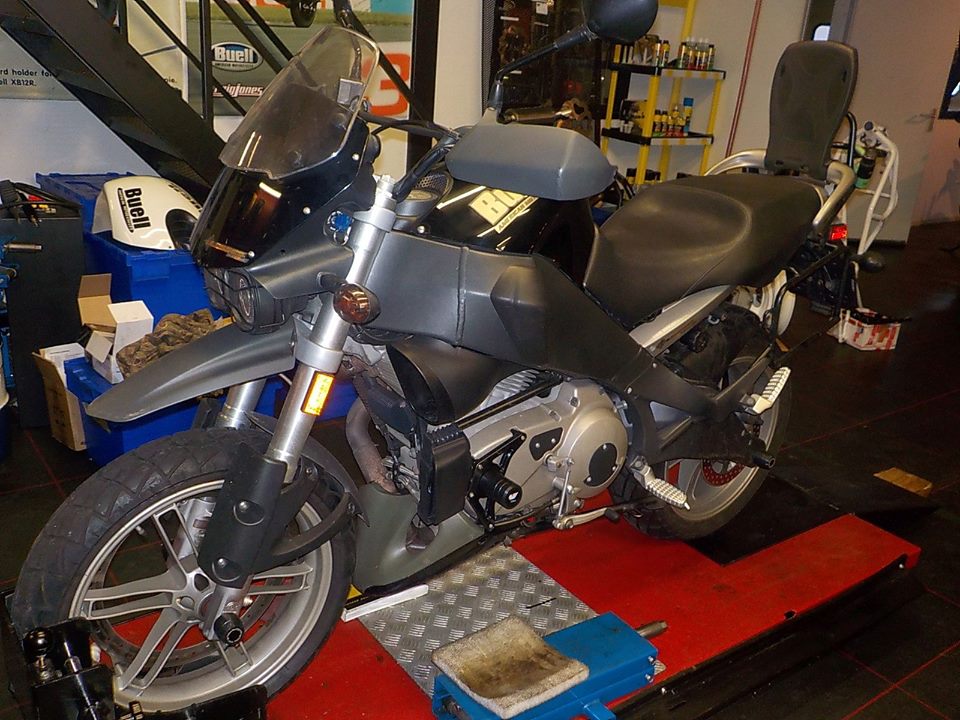 checking the front end — bij Twin Motorcycles Buell Support forever.