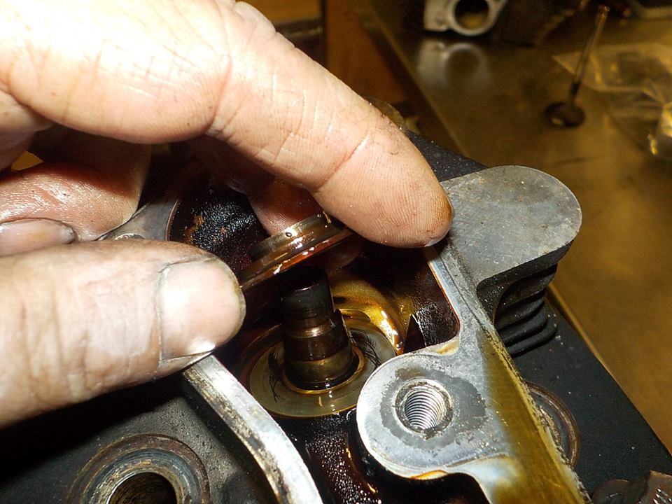 the valve spring lower seats stick on due to the oil film under theme