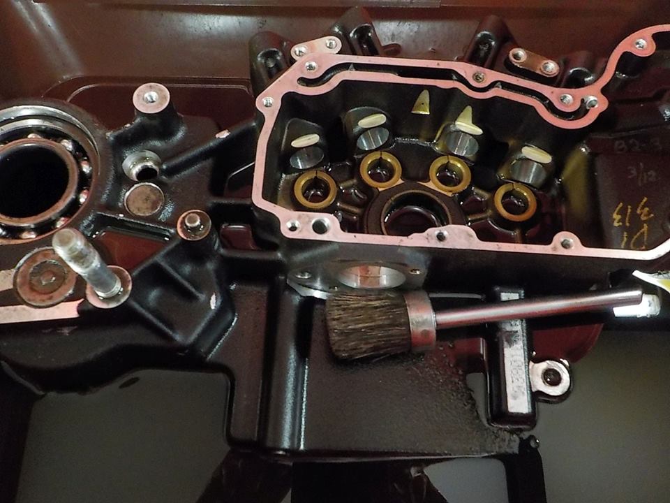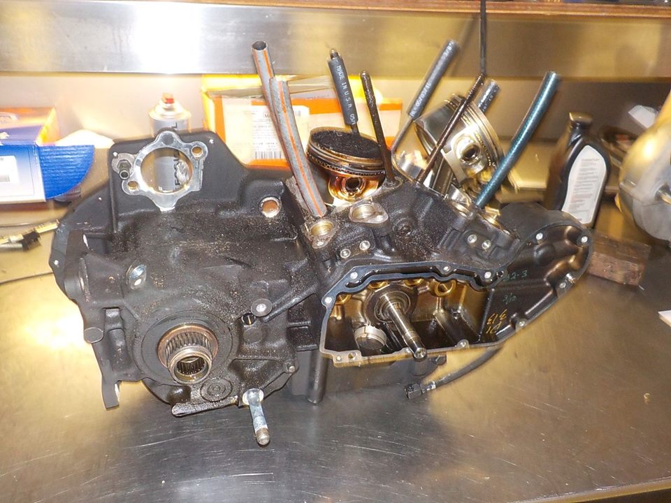 engine on the work bench.. bike parked .. time to split the cases and clean