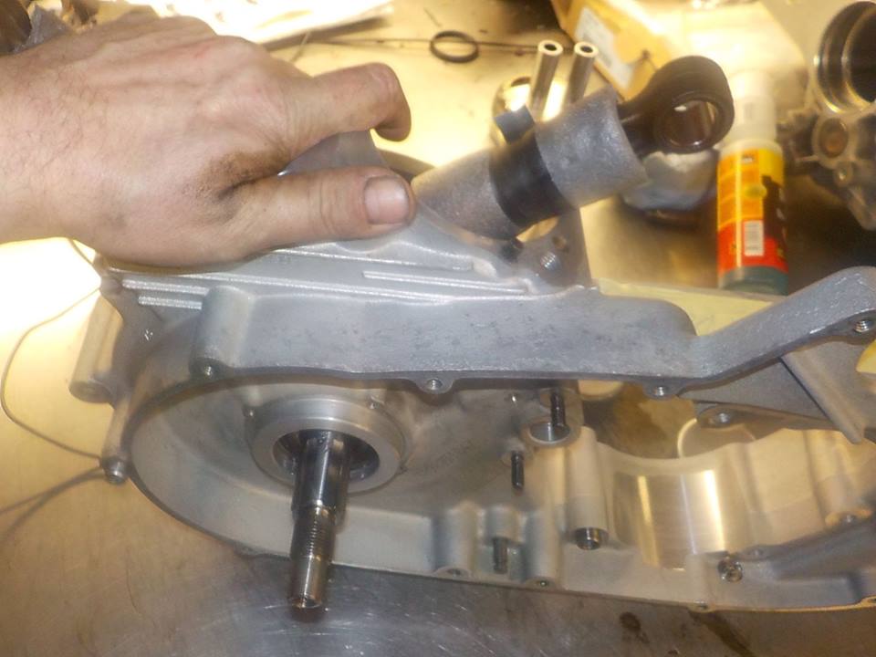 pressing cranks out.. other very nice project.. restoring a S1WL , bike is completely apart.. frame and wheel coated. the customer asked us to take care of the engine.. as the years where not kind to the engine coating we going to clean the case and coat this, before we start the engine rebuild