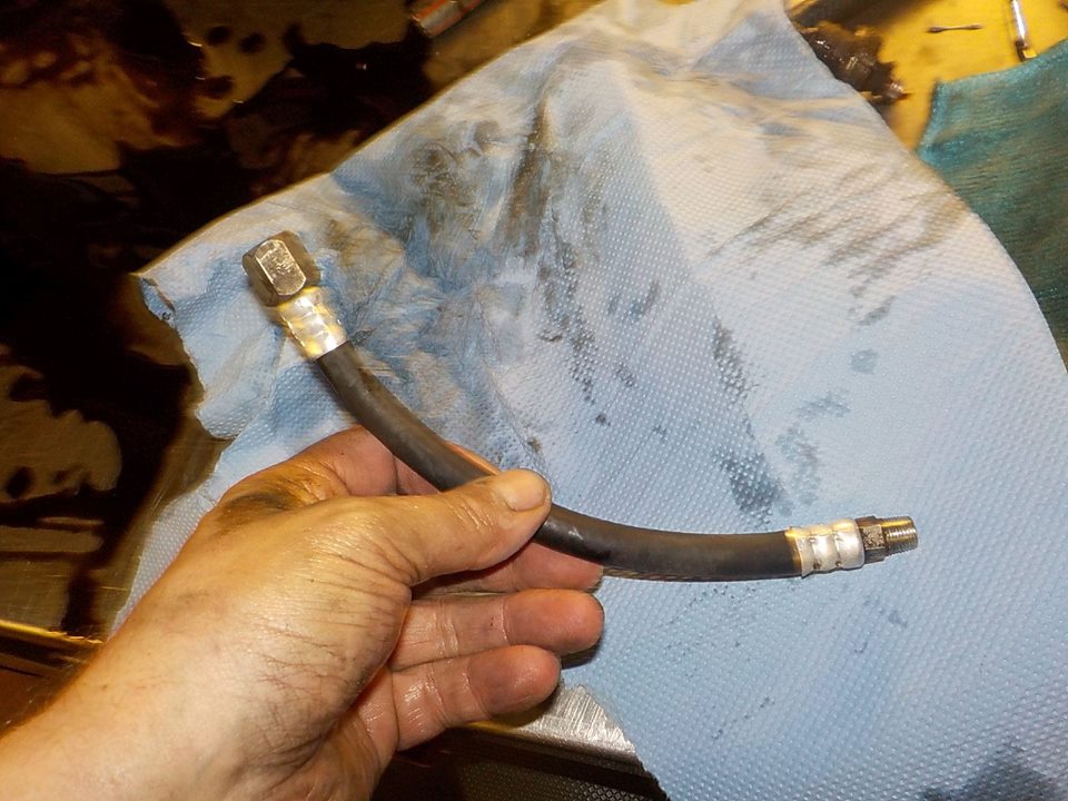 oil line cleaned.. the npt nipple end is turning in the hose, need to check when running if this will not leak, other wise we need to replace this line
