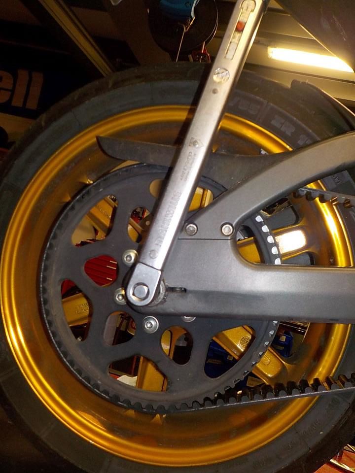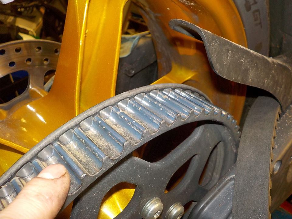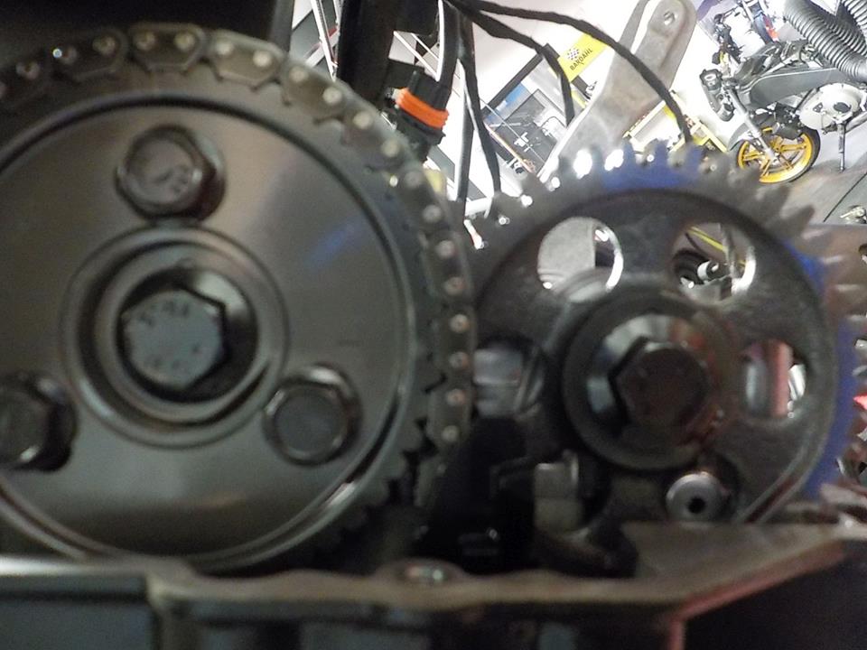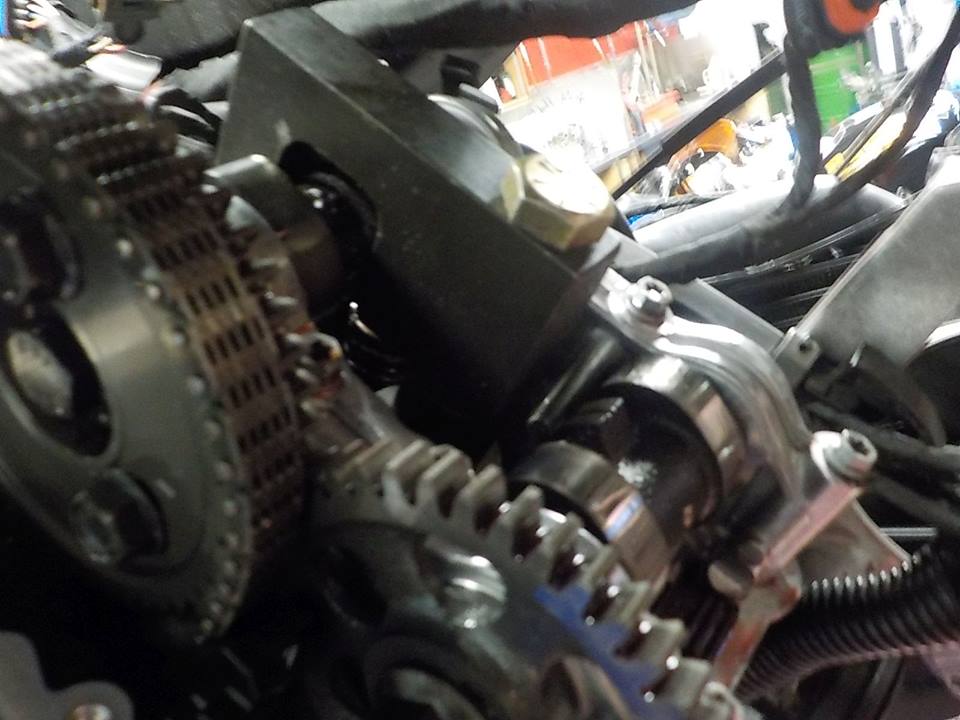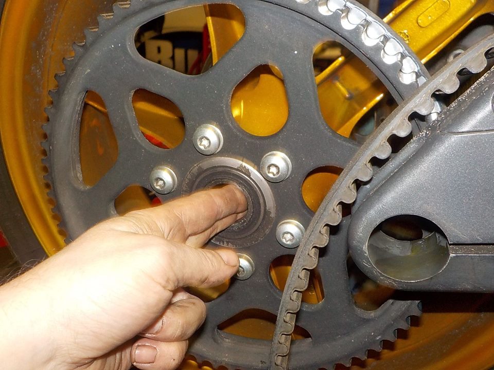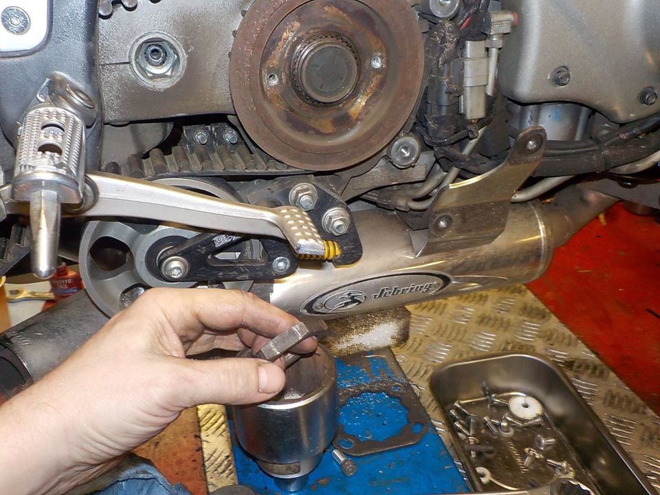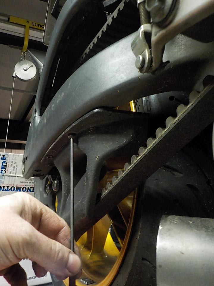 checking the primairy chain, check on 3 places, by rotating the engine, bumping the rear wheel with the bike in 5e gear