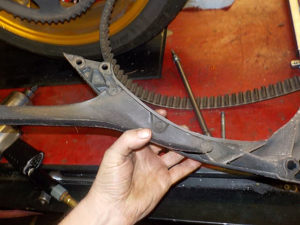 rear chain guide only comes loose when you remove the side cover and the holding plug