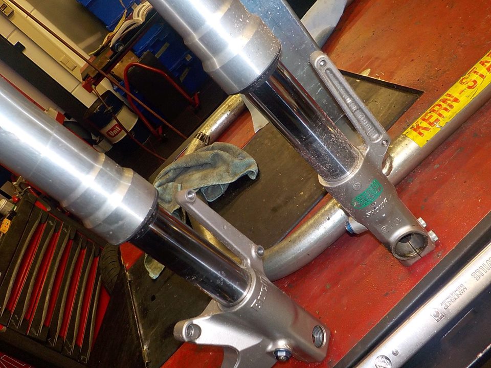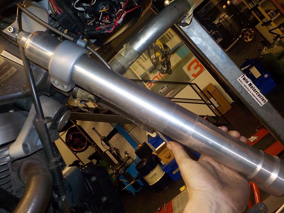 cleaning.. you can see how high the oil level was in the legs, from the corrosion.. during mounting rubb the tops with a oily hand.. to prevent this