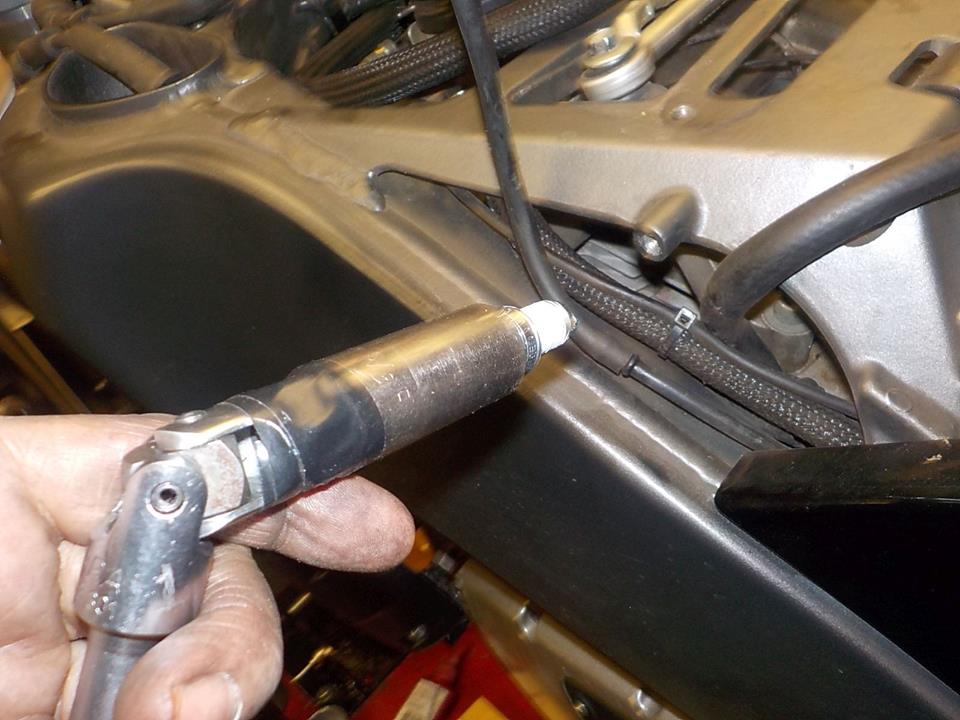 rear plug mounting with wobble and extention piece.. , carefull cross threading is easy , turn the key by hand untill your sure the plug is in