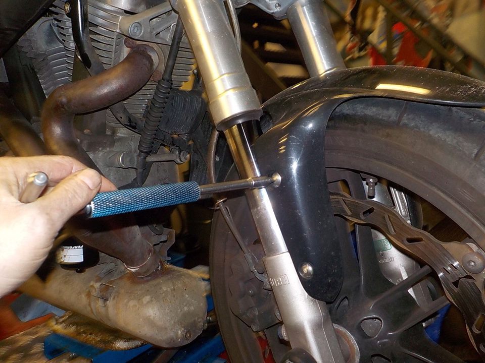 as you see the axle is under the leg surface.. only light tighten the axle protection. as you will slide the fork in. and it will stick and not feel free