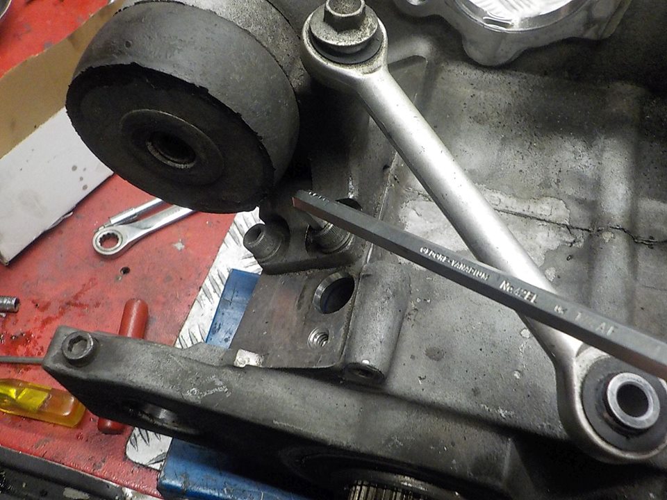 side stand removed.. on the 08 up Uly models 3 bolts more better.. but also extra hole in case — bij Twin Motorcycles Buell Support forever.