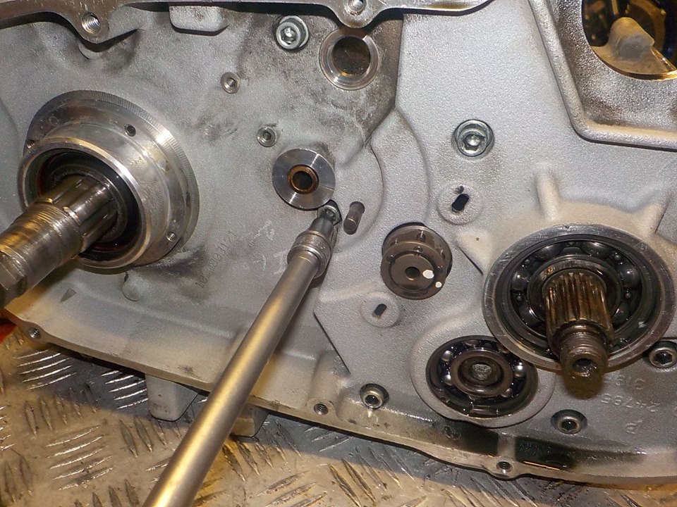 and on the 08-10 models.. instead of a oil pump, a spacer is mounted — bij Twin Motorcycles Buell Support forever.