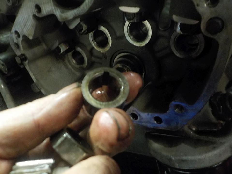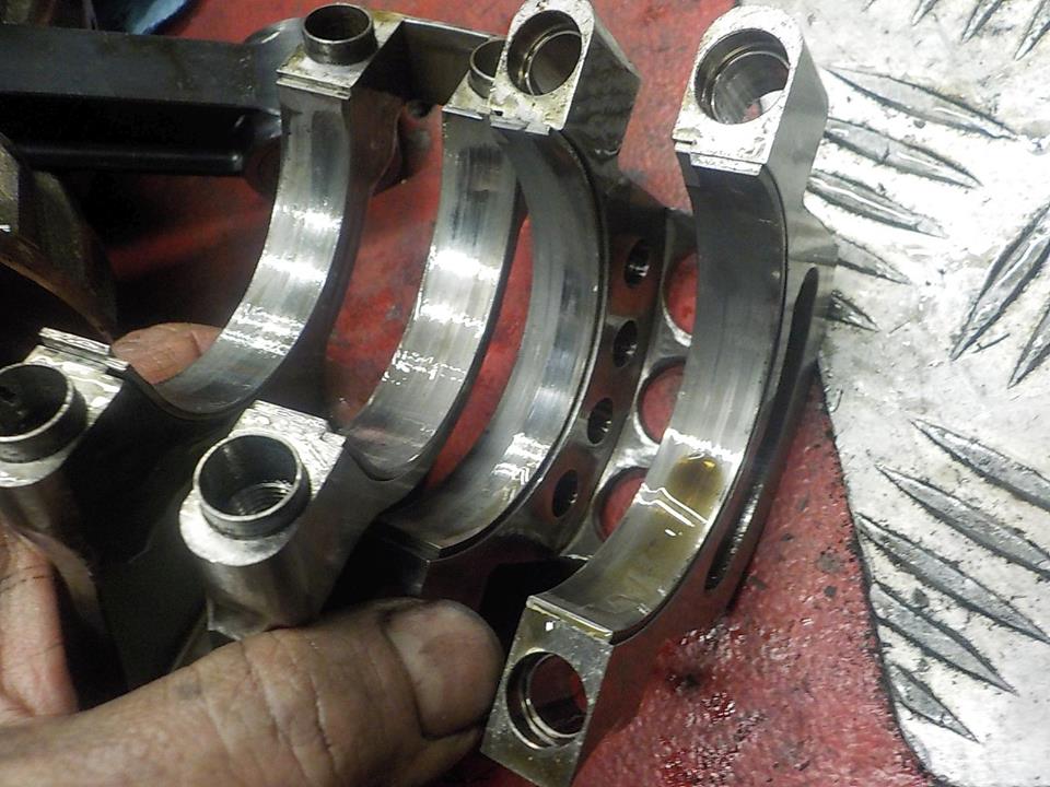 the white metal bearings placed on the pin... you see how much side play there is , a load bearing oil film is very hard like this — bij Twin Motorcycles Buell Support forever.