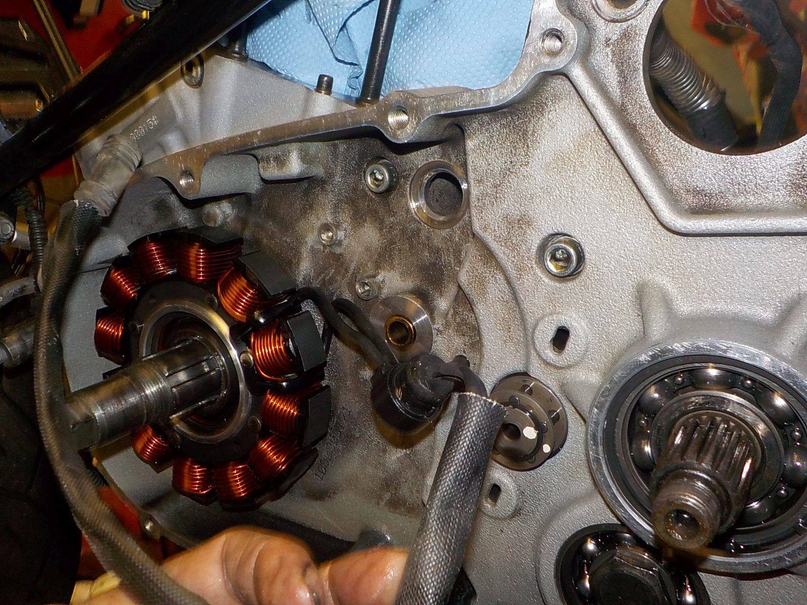 clutch basket and stator removed — bij Twin Motorcycles Buell Support forever.