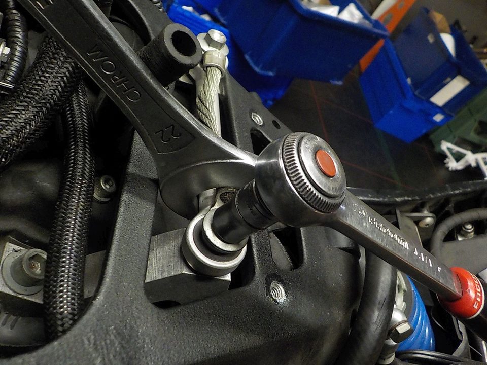 engine up and cables ziptied to the w-brace