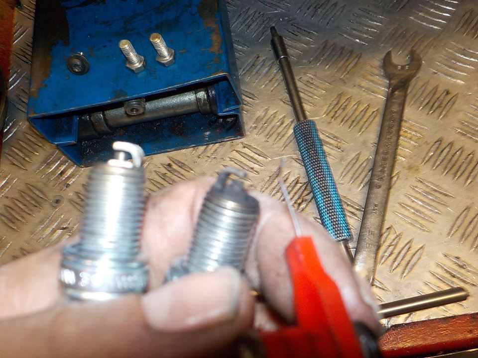 spark plugs out.. easy now... looks familiar