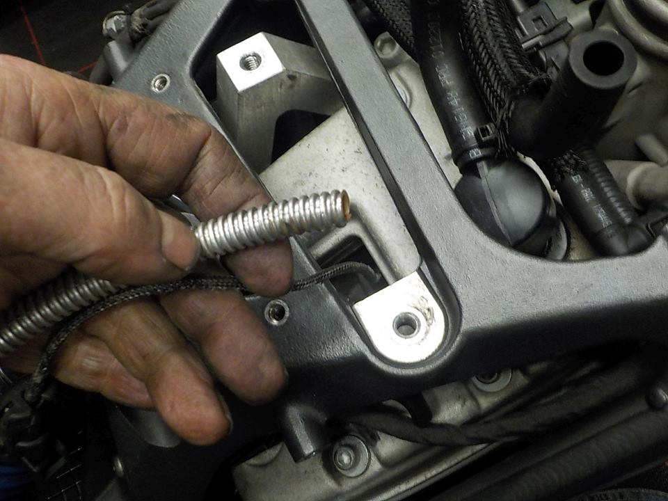 spark plug cable point theme in to the engine so it douse not rubb against the cables