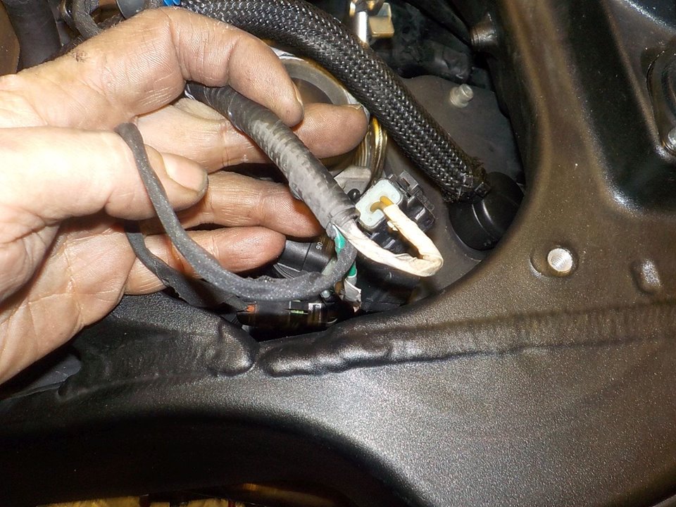 removing the right scoop to check the intake seals.. as this is a 2010 it has 2 O2 sensors take care of the wire when you test , so it will not hit the exhaust pipe