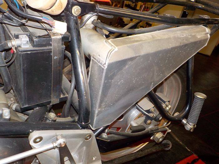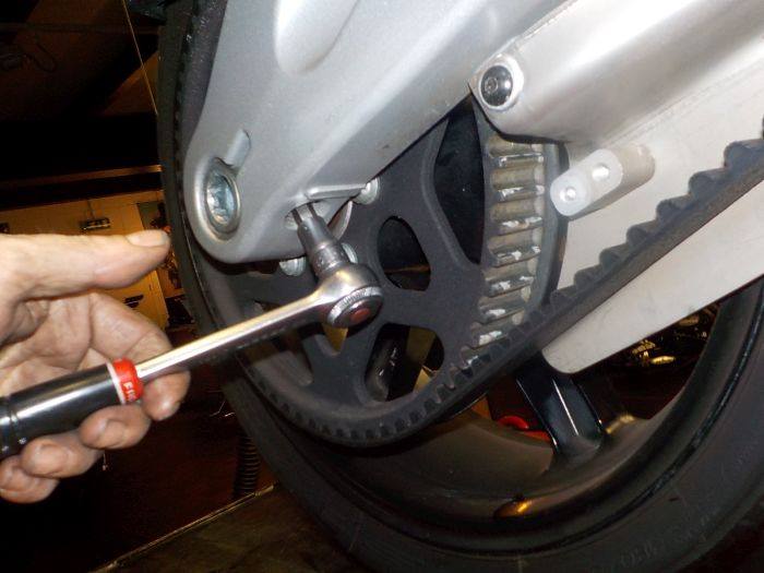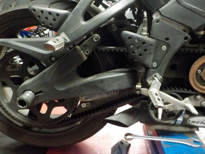 new belt on , wheel in half.. now first mount the swingarm brace