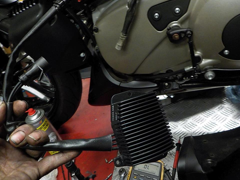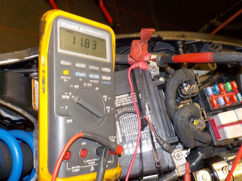 checking if the bike is charging, as the battery was flat ( could be very well the alarm that is mounted )— bij Twin Motorcycles Buell Support forever.
