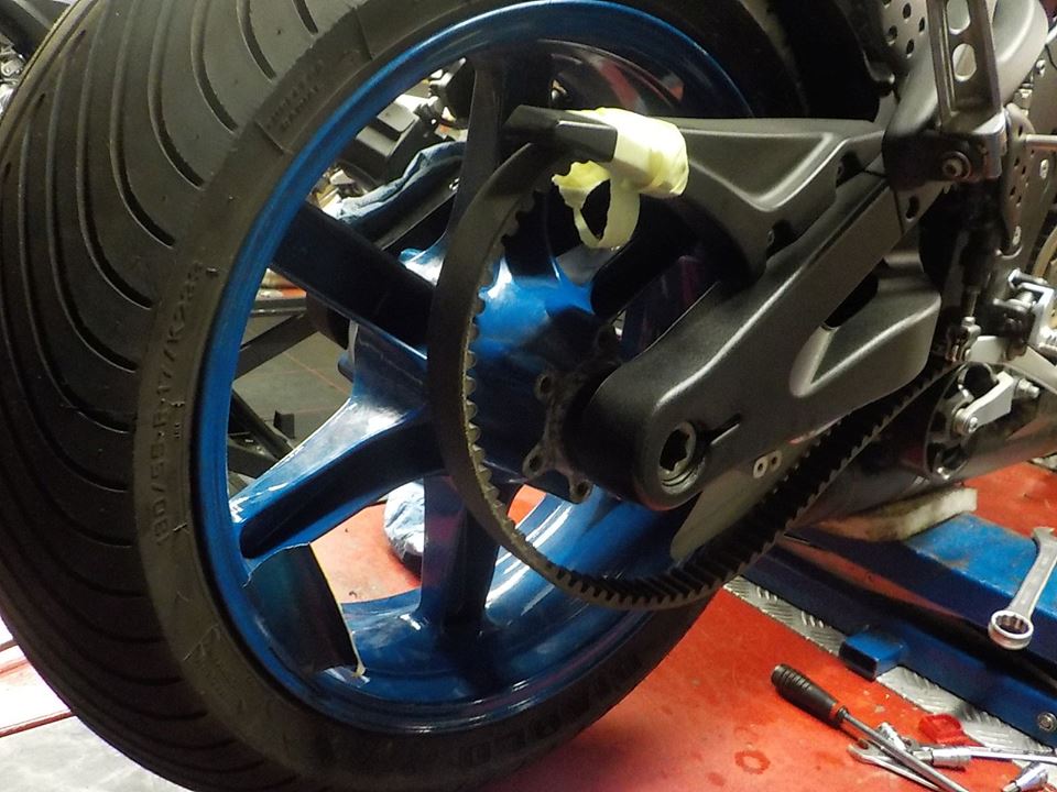 adjusting the primairy chain tension ( to loose ) — bijTwin Motorcycles Buell Support forever.