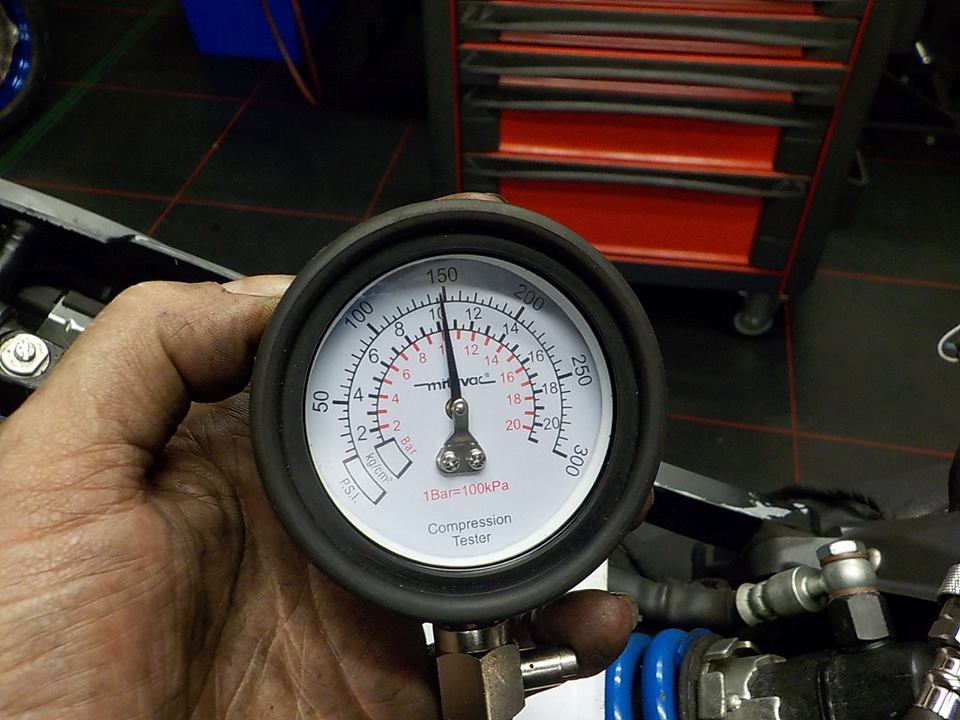 count the rotations.. about 5 to 6 and the the pressure sould reach it max ( cold engine ) 150 psi rear one — bij Twin Motorcycles Buell Support forever.